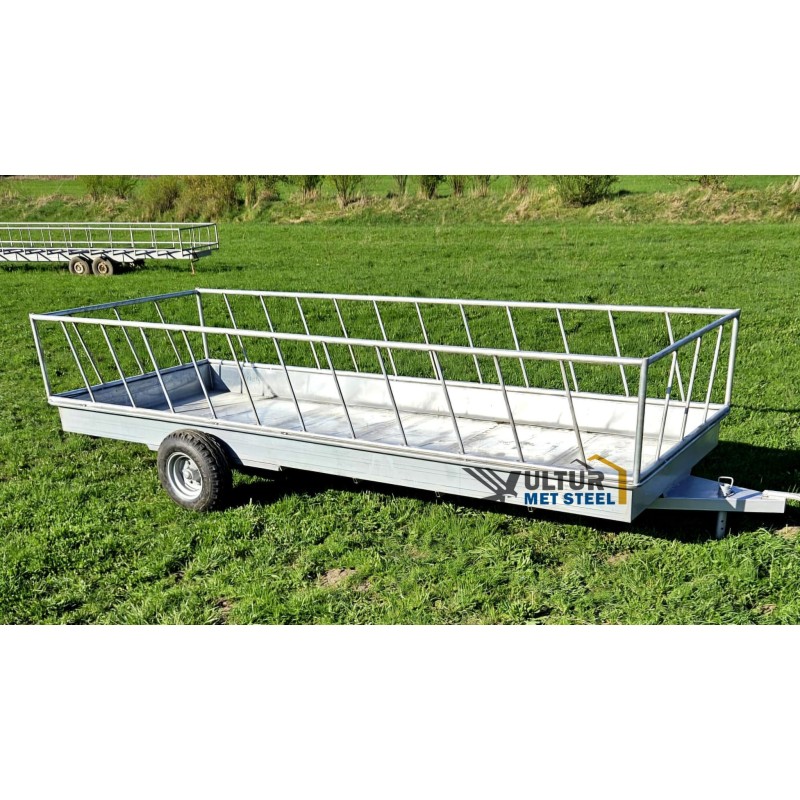 -Posibilitate de tractare cu tractor; -Finisaj zincat pentru rezistenta la coroziune; -Dimensiuni standard: L6 x l 2,2 x H 1,75 m.