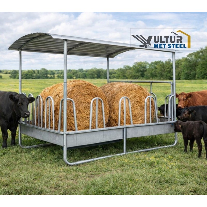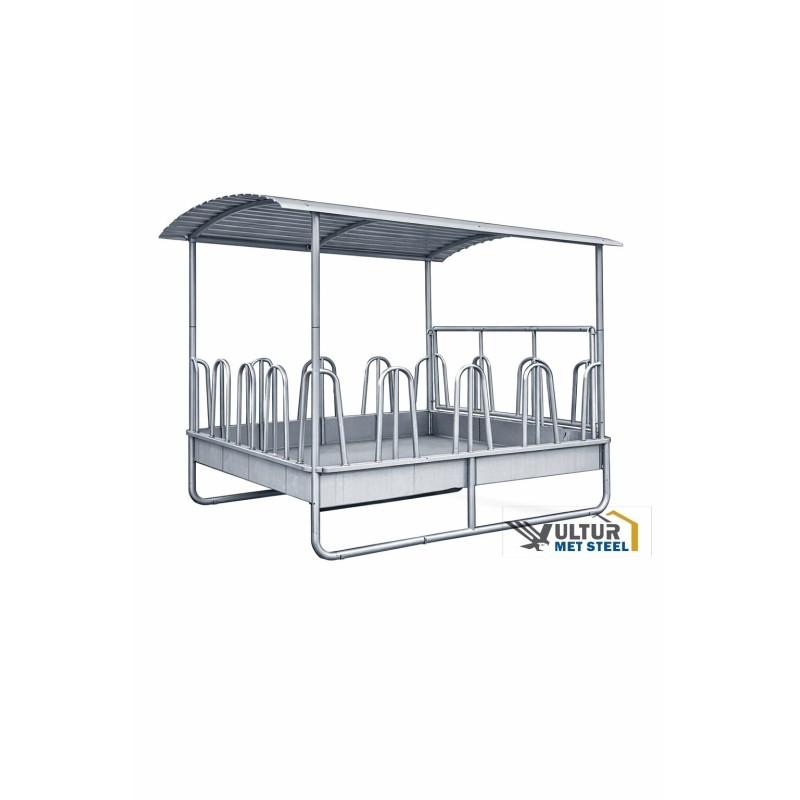 Hranitoare pătrată pentru bovine, realizată din oțel galvanizat, rezistentă la coroziune și utilizare intensivă. Permite accesul simultan al mai multor animale, reducând risipa de furaj și asigurând o hrănire eficientă. Ideală pentru pășuni și ferme.